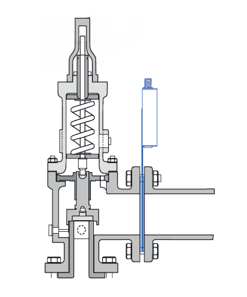 El dispositivo se instala aguas abajo del disco de ruptura o de la válvula de seguridad PSV. El flujo de proceso romperá la membrana al abrir el sistema de alivio de presión.